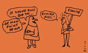 L’exposition présente à la fois les obstacles à l’égalité réelle et le chemin de la conquête de cette égalité dans l’histoire, par le droit et par les luttes. Les dessins crées par l’illustrateur Serge Bloch sont présentés en réalité augmentée. L’enjeu pour les femmes est leur autonomie financière et leur place dans la société. L’exposition montrera les aspects contradictoires auxquels les femmes se heurtent dans le monde du travail : discriminations, harcèlement et violences sexistes et sexuelles, non mixité des métiers et en même temps droits conquis.